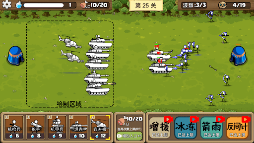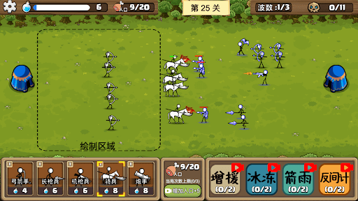 War is back again, in this classic war strategy game, build a mighty stickman army, then lead your troops to battle! In the game, we need to match different stickman soldiers, match the lineup reasonably, call the army by drawing lines, destroy all invading enemies, and destroy the enemy's base camp to win!