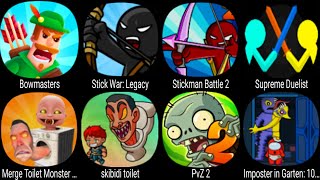 Bowmasters, Stick War Legacy, Stickman Battle 2, Merge Toilet Monster Battle, Skibidi Toilet, PvZ 2Horror Ghost Gaming