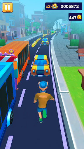 - Jump and slide on street tracks to avoid obstacles