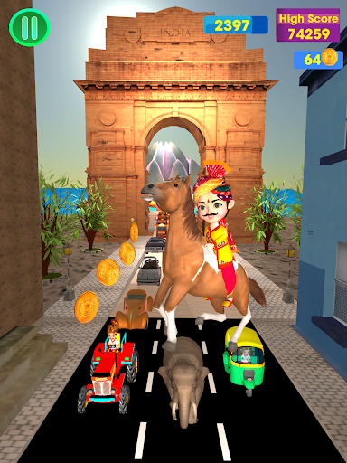 In this game you can explore all the iconic location How To Play :-* Dodge the oncoming buses* Fight with Boss* Be safe from Bison* Run Fast and collect coins* Beware Of The Sudden Obstacles* Avoid All Obstacles* Enters in green magical gate to change the locations * Fly on peacockCharacter :- * Three Characters Features :-* Endless Run* Boss Fights* Extreme Graphics * Lion* Horse* Bike* Peacock* Bison