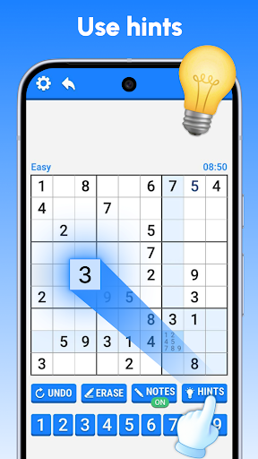 ✔️ Hints help you figure out when you get stuck in free Sudoku puzzles.