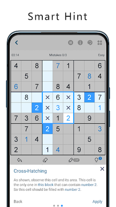 ✓ The Smart Hint function shows the thinking step of solving puzzles and users can learn sudoku techniques easily from it.