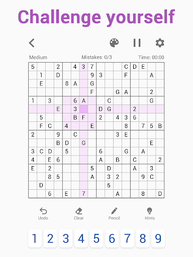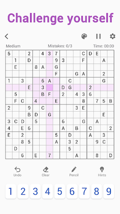 Varying difficulty levels: Challenge yourself with six difficulty levels in this Sudoku game, including 6x6, easy, medium, hard, expert, and 16x16.