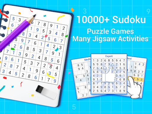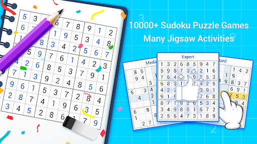 Train your brain with 10000+ Sudoku puzzles, jigsaw activities, daily challenges, themes, notes, hints, undo, and eraser features. Play now!