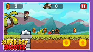 Super Boy Shooter - Jungle Run Adventure Shooting enemies and collecting gold in the vast jungle, jump and slide under obstacles , unlock more shooters and break the high scores to challenge your friends!