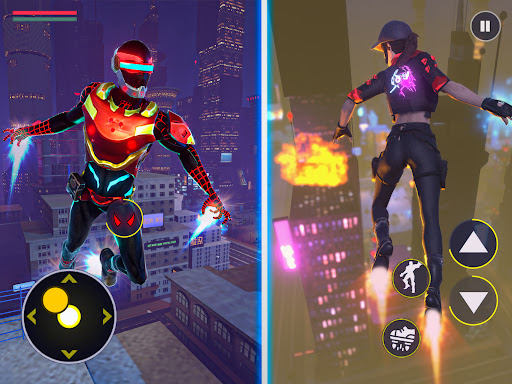 The story of the flash rope hero action games begins when evil Alien Army Robot force wants to enslave man living on earth and they have hired spider mafia Leaders and goons to control the city and the people. Our future is under sabotage; everything is taken over by the spider mafia, the police, the military. It's an open world fighting games no rules or laws, no limits. It’s a straight war between the true avengers of justice vs evil villains. Play the rpg fighting games to avenge and enjoy a free roam open world environment.