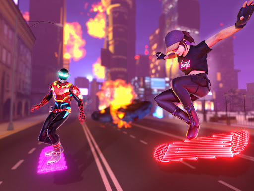Hover board flies fast to chase the enemies gangs, shooters