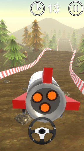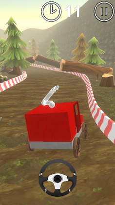 No brake, no acceleration management: just a steering wheel to drive along a downhill road.