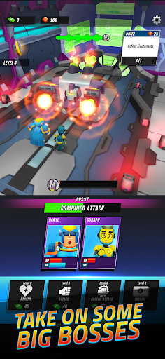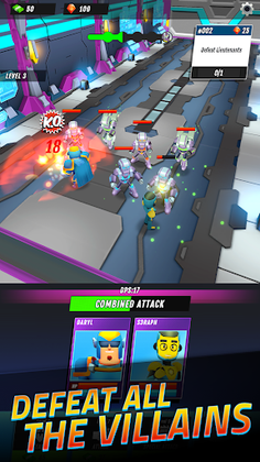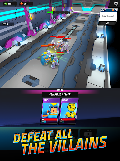 - Epic Battles: Engage in strategic battles against Doctor Cruel's minions. Adapt your lineup and tactics as you progress through challenging levels, ensuring your team's supremacy.