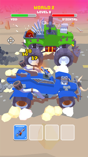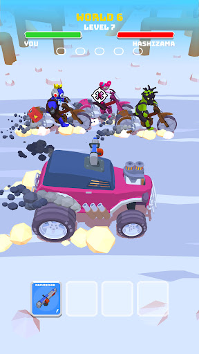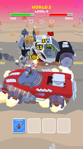 The gameplay is so simple but exciting, all you need to do is just tap the screen and focus on your car. All you need to do in this game is choose a suitable weapon that best suits your playing style and the demands of each particular level. Then, gradually destroy individual parts of other vehicles. This way they lose control, and the vehicle explodes 💣.