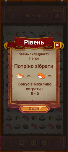 Sushi Lines- це гра три в ряд в якій тобі потрібно збирати суші.