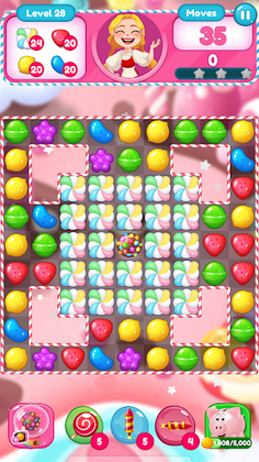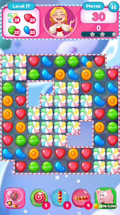 - Swap and match 3 or more Candies of the same colour and shape. 🍭🍫🍭🍭