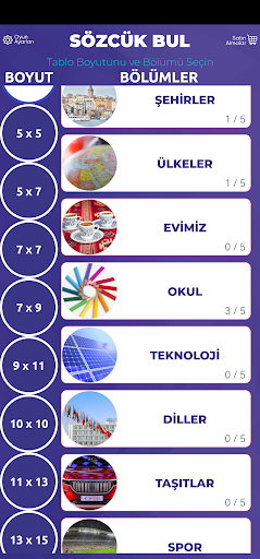 Try to find words in easy or very difficult levels with many sections and different board sizes.