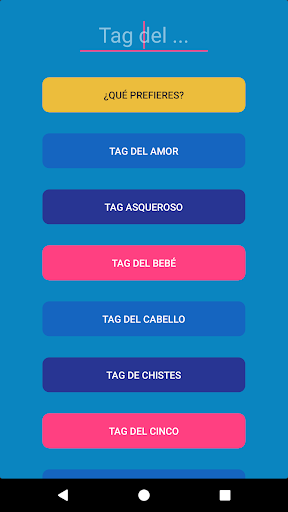 Bueno pues se acabó tanto elitismo, sé el primero o la primera en disfrutar con tus amigos, en solitario o en familia con el entretenido (a veces picante y salseante) juego de tags, en el que podrás responder entre 15 y 50 preguntas sobre ciertos temas cool, en los que podrás conocer más a tus amigos o a otras personas con las que quieras saber más sobre ella en profundidad ¡pudiendo ahora guardar tus respuestas! así podrás compartirlo otro día.