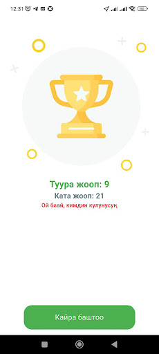 Бул кыргызча тестти ойноп, ар кандай категориядагы суроолорго жооп бериңиз.