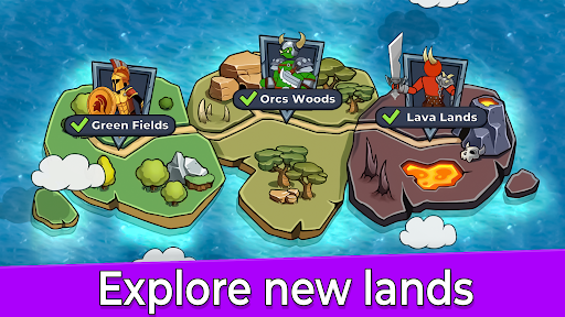 As you progress through the game, explore new lands and face different enemies. Each new encounter presents a new challenge to test your idle stickman and casual game skills. Battle in Green Fields, Orcs Woods, Lava Lands, and many more captivating locations!