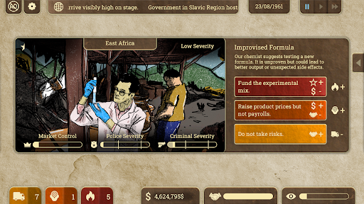 Face over 90 events that will test your resource management. Negotiate with the police, confront your rivals, and turn every crisis into an advantage.