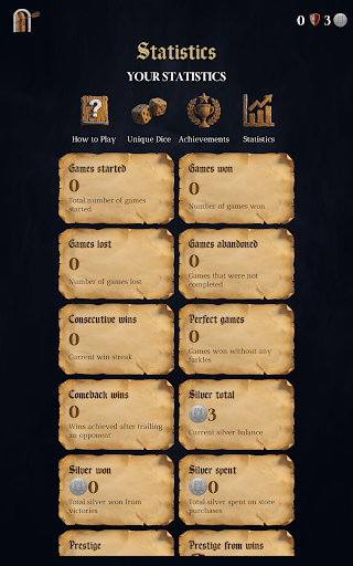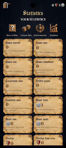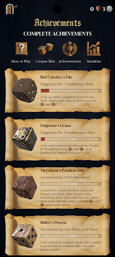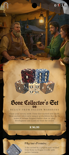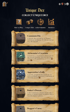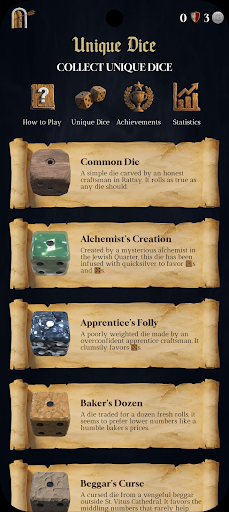 • Discover dice with unique stories and custom probabilities. Earn legendary dice through achievements or purchase rare finds from the trader.