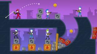 Discover a great variety of arsenal resources available in this stick man shooting game. Gather gold coins to make your stick man shooter undefeated. You can buy a gun, a machine gun, a shotgun, a sniper rifle or even a minigun! Each weapon can be improved. In addition, to protect your character from bullets, there are helmet and body armor available. Still not enough? In this stick man game, you have an opportunity to completely change the look of stick man by choosing one of the many skins for the shooter.