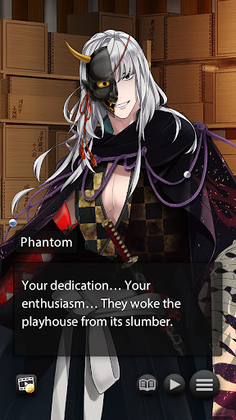 A dark kabuki genius who secretly pulls the strings of the playhouse from the shadows. Your arrival at the theater disrupts the delicate equilibrium of his existence, but as time passes, the specter gradually comes to see you as an ally… and then an obsession. Before long, you find yourself tangled in a twisted relationship as dangerous as it is devoted. But when outside forces threaten the theater and push the ghost’s passion to fever pitch, you’re forced to realize that this romantic story is hurtling toward a tragic end.