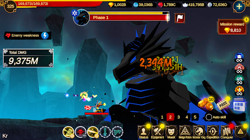 .A wide variety of adventure battles (Monster Hunt, Underworld Attack, Escape from Siege, Jungle Hell, Cold Hell, Heat Death Hell, Lord of Mask, Break Through Blood)