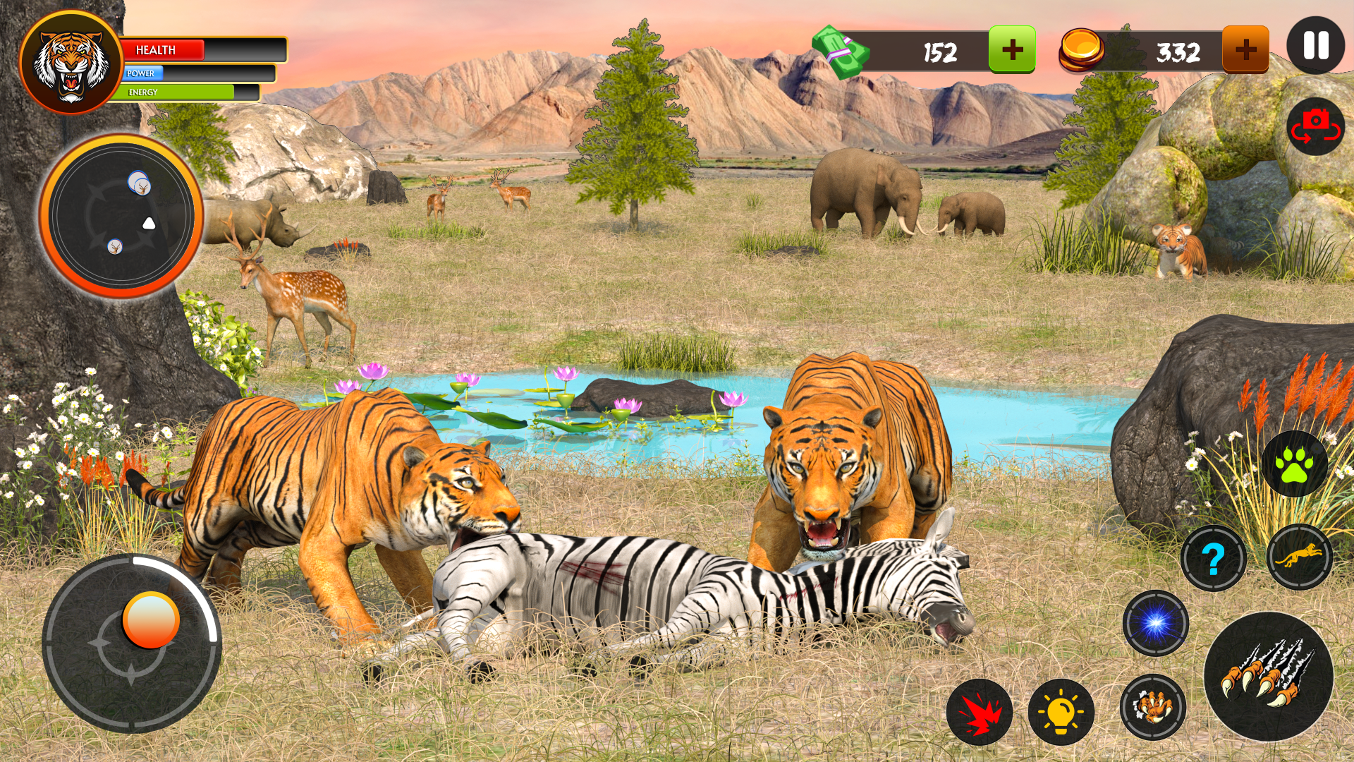 This is a Tiger Family simulator, in the wild forest you have to survive as a jungle tiger, hunt your prey and enhance the health of the tiger and remove his hunger. As a Tiger King you have to feed your family and cute Tiger cubs and Queen Tigress are waiting for your arrival so deliver them food as well. This is not an ordinary game, the realistic wild safari is an adventure like no other game has to offer, choose your prey and attack it. There are special attacks assigned and associated with your tiger so make them count and become King of Animal Games. This tiger game is exclusively designed for those who like Big Cats and Wild Lions.