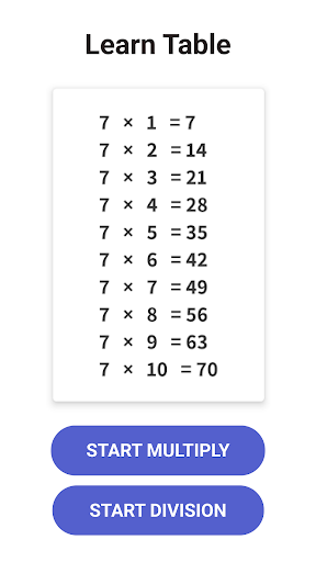 You can choose the size of the table you want to study (x10 or x20) as well as the type of game - test, truth or lie, input, enjoy free math games and mental math