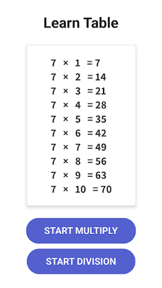 Learn the multiplication table from 1 to 20, and then test your knowledge by solving the multiplication math game and division examples.
