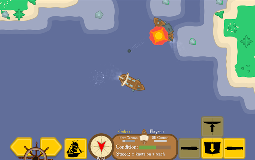 The ship mechanics are based on real sailing; you'll have to adjust your sails and your ship's angle to the wind to control your speed and out-flank your opponents. Godspeed, captain!