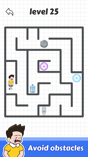 - Slide your finger to draw a line, helping the boy walk through the maze and go to toilet successfully.