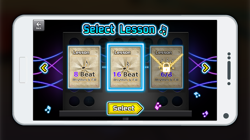 * Provides Lesson mode for beginners to learn rhythm of drums and to practice drum playing style.