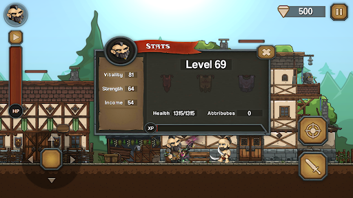 - Stats system with strength, vitality and income which also increase buildings stats