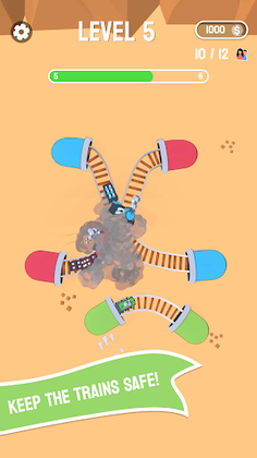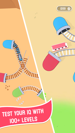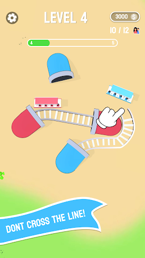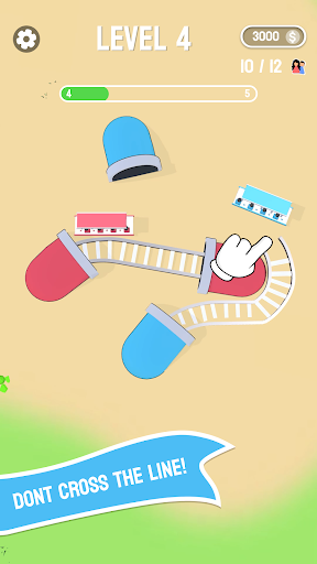 Objective: Draw tracks to connect the same color tunnels for the trains to make it to their destination without crashing