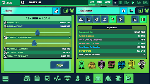 Choose from many different types of vehicles spanning from trucks and buses to trains and airplanes. Purchase the vehicles that bring the biggest revenue and get ahead of the competition. Make sure your passengers have the comfort and speed they demand by upgrading your units. Charge them extra for the luxury or keep your ticket prices low and competitive.