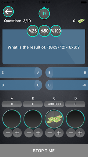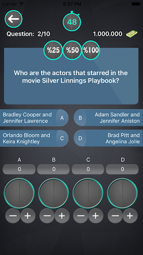 The game consists of 10 questions; It is the aim of the game to protect 1,000,000.