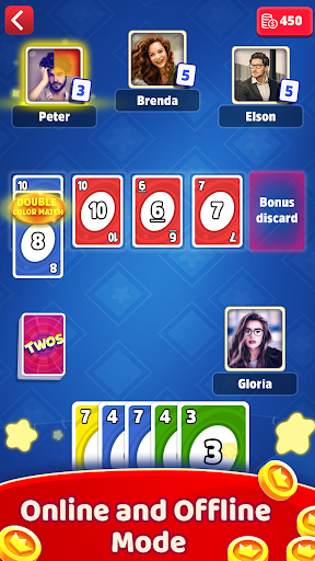Two's the Dos is a fast-paced, competitive card game where players aim to be the first to get rid of all their cards by matching numbers and colors. Play with friends worldwide and earn coins by watching videos or spinning the wheel.