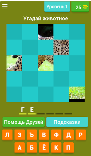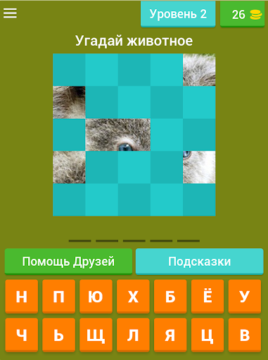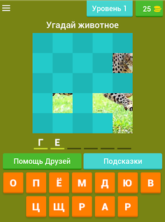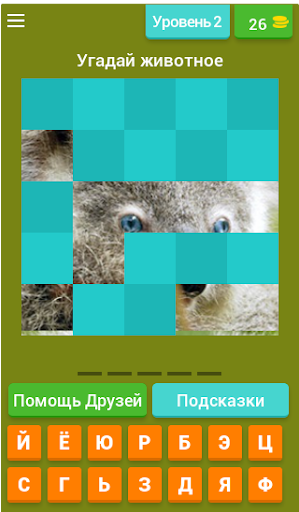 Каждый уровень представляет собой фото животного, разбитое на 4 части. Твоя задача по фотофрагментам догадаться, что за представитель фауны скрылся в этом пазле.