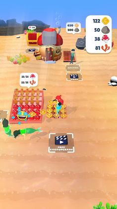 Set up stalls in your colonies to trade your bountiful harvest of oceanic delights. Sell your products to fellow merfolk and sea creatures, and earn precious treasures to expand your underwater realm.