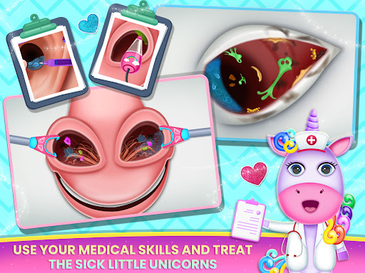Examine all organs in the pregnant unicorn body and find out which one needs healing. Eliminate viruses and choose the right pill for the unicorn mom. Treat your cute unicorn cat princess patients and experience the thrill of performing life-saving ENT surgeries in our unicorn doctor ASMR salon game for girls.