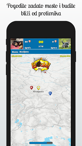 Kada se povežete sa drugim igračem, dobijate praznu kartu Srbije ispred sebe, kao i zadatak (lokacija) koju treba da pogodite gde se nalazi. Kliknete na mapi gde mislite da se lokacija nalazi, kad vreme istekne, porede se vaša lokacija i lokacija protivničkog igrača, zatim se računa ko je bio bliži i taj igrač dobija bodove. Traži se 15 lokacija, i ko skupi više bodova je pobednik.