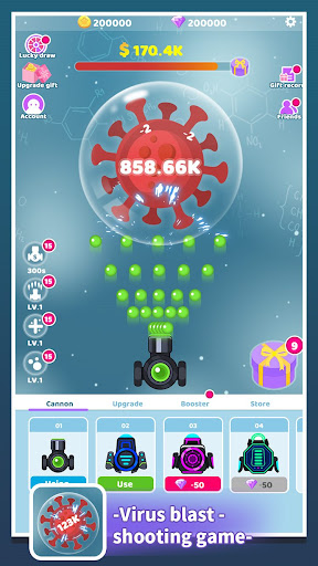 > Tap the screen to launch cannonballs to attack viruses, simple and fun.