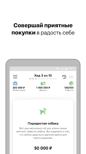 Часть заработанных средств необходимо направлять на приятные покупки, чтобы поддерживать игровой уровень радости. Ведь в жизни важно не только финансового благополучие, но и эмоциональное состояние. Игра научит планировать, принимать решения, критически мыслить и оценивать рентабельность своих вложений в условиях приближенных к реальной жизни.