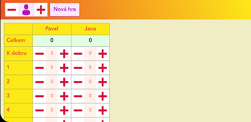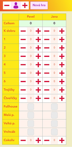 Tabulka usnadňující počítání bodů pro hru Vrchcáby.
