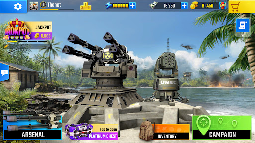 War Game: Beach Defense never lack of guns, bullets and missiles to defend your land in every war.