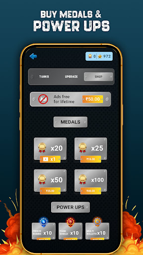 Unique Power-ups : Discover a range of power-ups like, Freeze bomb,multiple bullets, and shield tank that will help you in your war tank game quest.