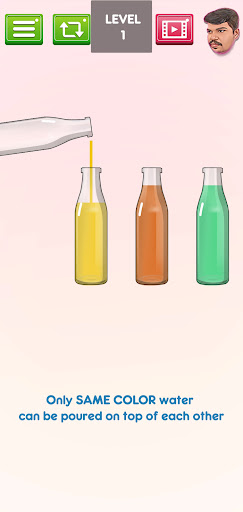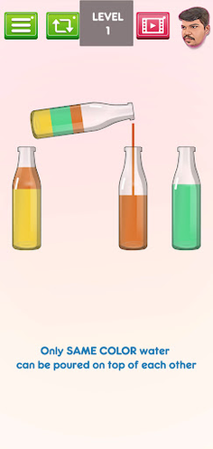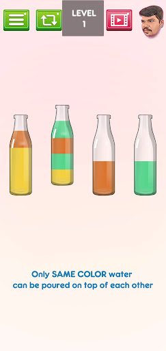 This color water sort 3D is a very easy bottle game. All you have to do in this whole color matching game is to use your brain and sort colors correctly in every tube. Guys, it's time to get your head in the game and sort color puzzle games. There are tubes filled with different colors. Quickly sort the colored waters in the tubes until all the same colors are together in each tube and become a champion of this color water sorting games.