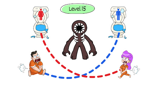🔹 Click on the monster to start drawing the lines to restroom