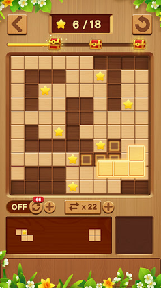 ✓ Fit wood blocks of different shapes to complete lines and rows without gaps to eliminate cubes.