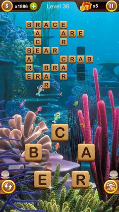 - Find as many words as possible to unlock levels and earn extra bonus coins.