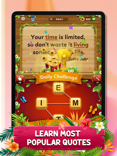 The game features a simple and intuitive gameplay, where players need to swipe and connect letters to form words. The longer the words, the higher the score. There are also special bonus tiles that can multiply the score, making the game even more exciting.